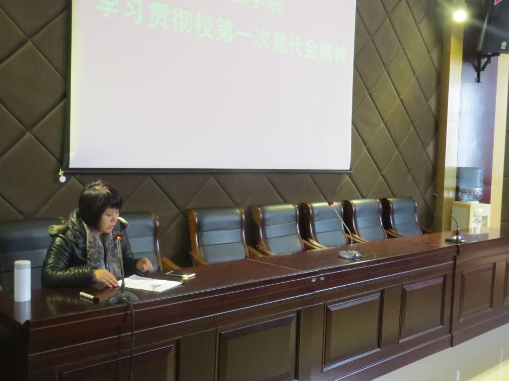 1月11日下午,我院在六号楼地下报告厅召开全院教工会议,学习贯彻学校第一次党代会精神,院党委书记唐磊传达党代会精神,宣读了报告原文。我院全体教师参加了本次会议。
