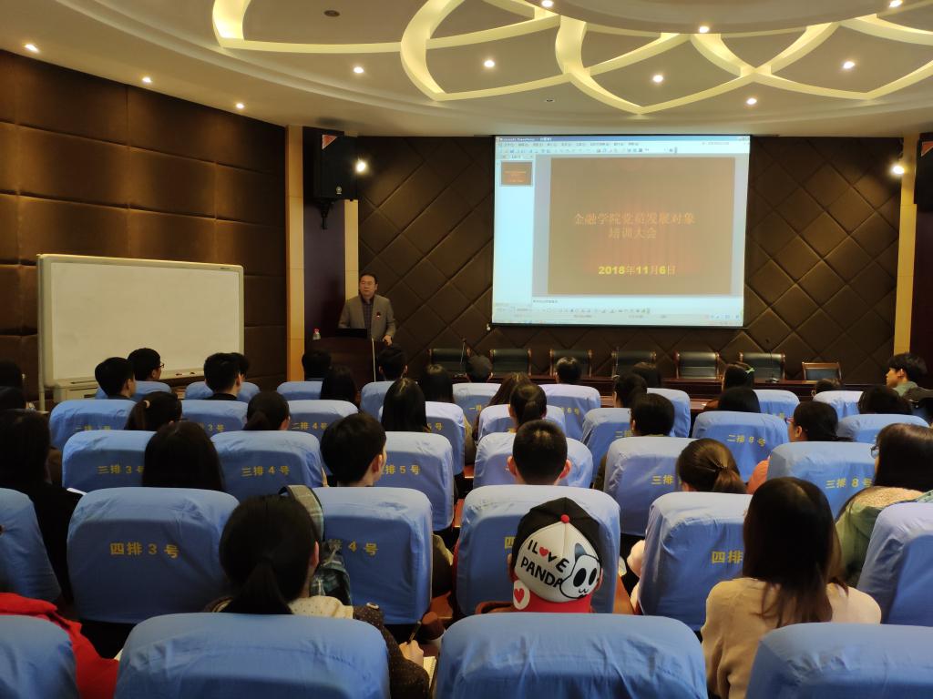 11月6日下午,开云体育 党员发展对象培训会在舜耕校区金融楼报告厅召开。学院党委书记吴红文出席本次会议,并为71名党员发展对象上党课,培训会由学院党委专职组织员李勇主持。
