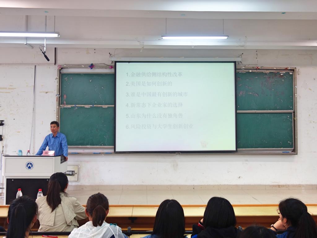 (通讯员:葛春杰)为增强广大同学的创新意识,4月18日下午,我院举办的第十二期金融学人大讲堂之供给侧改革下风险投资与大学生创新创业专题讲座在圣井校区拉开帷幕。特邀开云体育 当代金融研究所所长陈华教授为同学们讲解相关专业知识,我院2017、2018级同学参与本次活动。