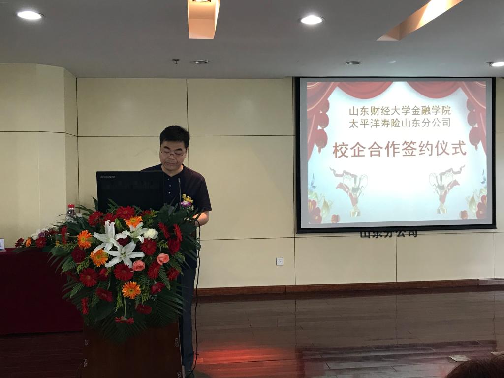邰富春在致辞中向参会人员介绍了太平洋寿险山东分公司的发展情况,对学院为公司培养大量的专业人才、提高从业人员素质,为公司和行业蓬勃发展做出的积极贡献表示由衷的感谢,他希望双方可以按照战略合作协议更好地实现人才培养和使用对接,努力实现合作共赢,促进全面战略合作关系的不断深化发展,打造校企合作、协同创新的新典范。