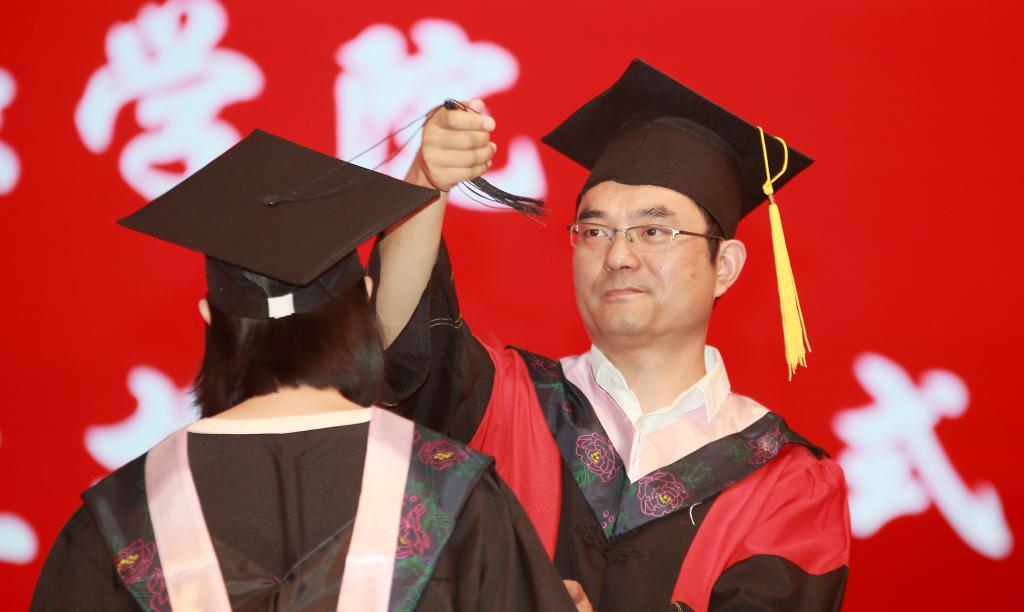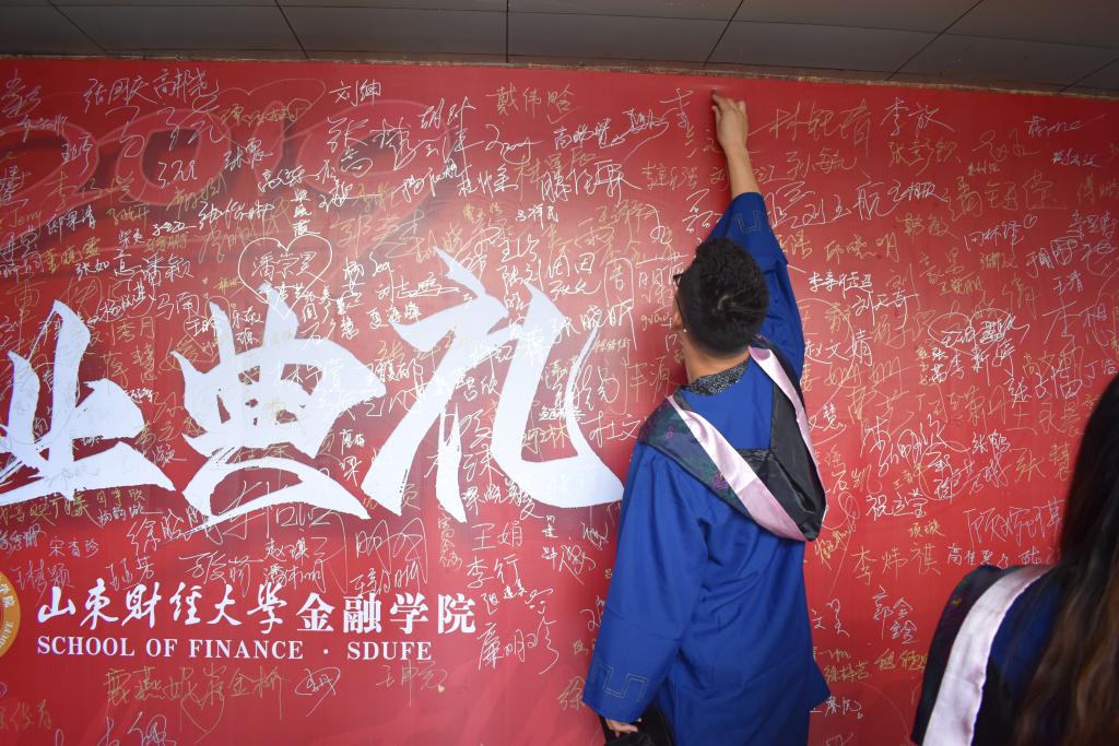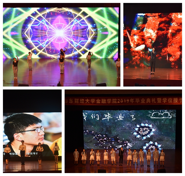 毕业典礼结束后,在喜庆欢快的《团结友谊进行曲》中,毕业生依次上台接受拨穗,领取学位证书。礼堂中,师生们的文艺演出精彩纷呈,舞蹈《What is Youth》、诗朗诵《金融是一条河》、独唱《凤凰花开的路口》、合唱《夜空中最亮的星》不断“引爆”现场气氛。