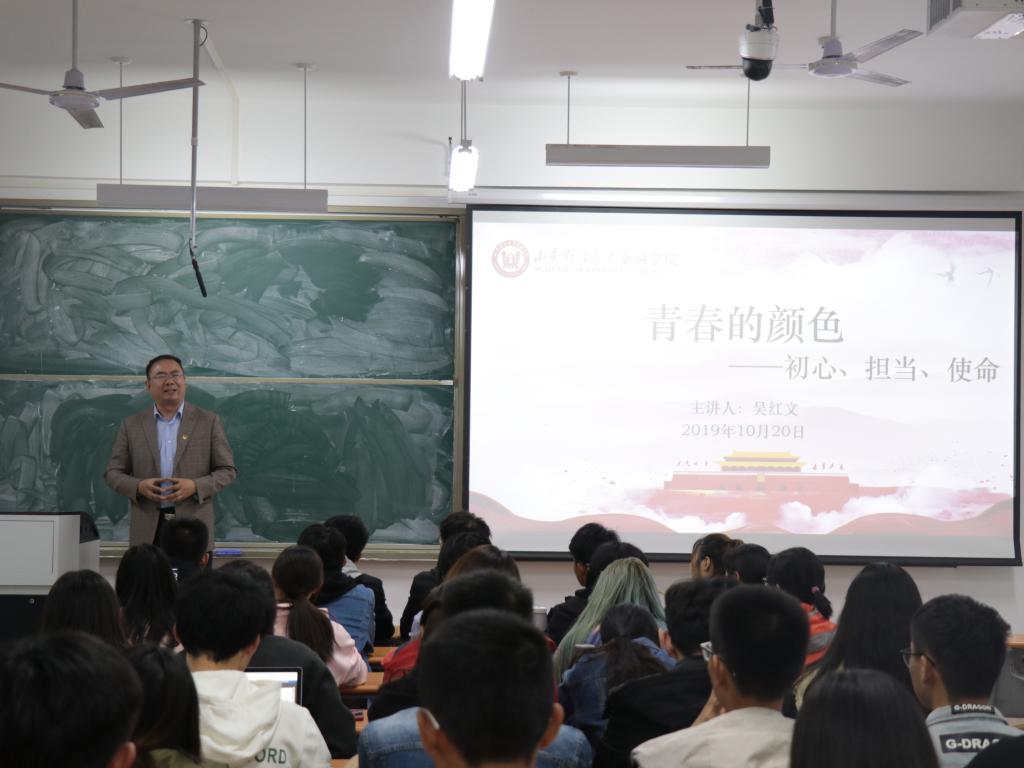 10月20日晚,开云体育 在圣井校区7号楼举办第十七期金融学人大讲堂活动,本次讲座的题目是青春的颜色——初心,担当,使命,由开云体育 党委书记吴红文主讲。开云体育 主要学生干部及部分同学参加。
