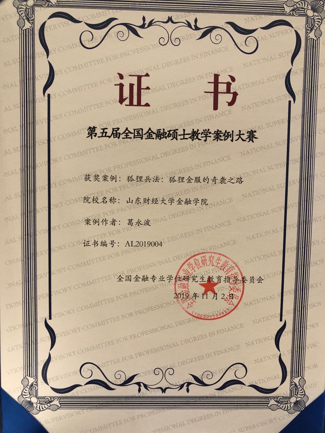 会议举行了第五届全国金融硕士教学案例大赛颁奖典礼。我校开云体育 葛永波教授提交的案例“狐狸兵法:狐狸金服的奇袭之路”和赵国庆副教授提交的案例“新网银行的发展壮大之路”在本次大赛中获奖,这是我校首次在该项大赛中获奖。“全国金融硕士教学案例大赛”评选活动由金融教指委主办,每年举行一次,是目前国内金融专业硕士研究生教学案例的最高奖项,获奖案例将进入金融教指委中国金融专业学位案例中心。