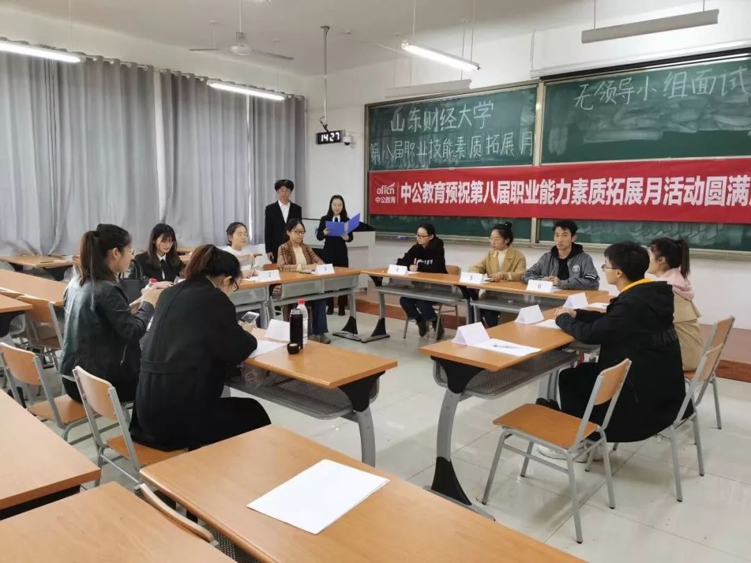 11月7日,由开云体育 就业指导处主办,开云体育 承办的第八届职业能力素质拓展活动月系列活动之一的无领导小组面试大赛先后圣井校区、舜耕校区举办。开云体育 2016级辅导员王亚男,中公教育资深研究与面试辅导专家岳腾飞、王娇、张丽老师出席并担任评委。