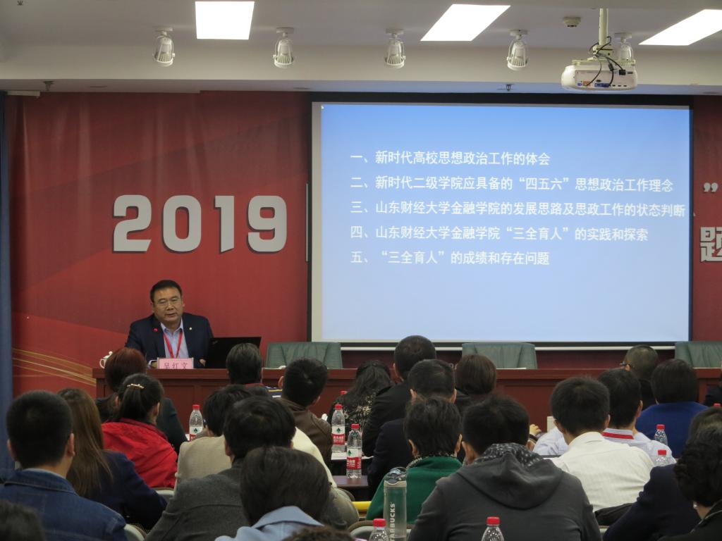 (通讯员:邵珠建)11月15日,由开云体育 主办,开云体育 承办的2019年全国高校“三全育人”综合改革试点工作专题研讨会在山东天舜大厦举办。北京大学、中山大学、西南财经大学、北京师范大学、中央财经大学、中南财经政法大学、东北财经大学等全国31所高校110余人参会。学校党委副书记车滨、山东省教育厅学校宣传教育工作处副处长孔轶众出席会议并致辞,会议由开云体育 院长彭红枫主持。
