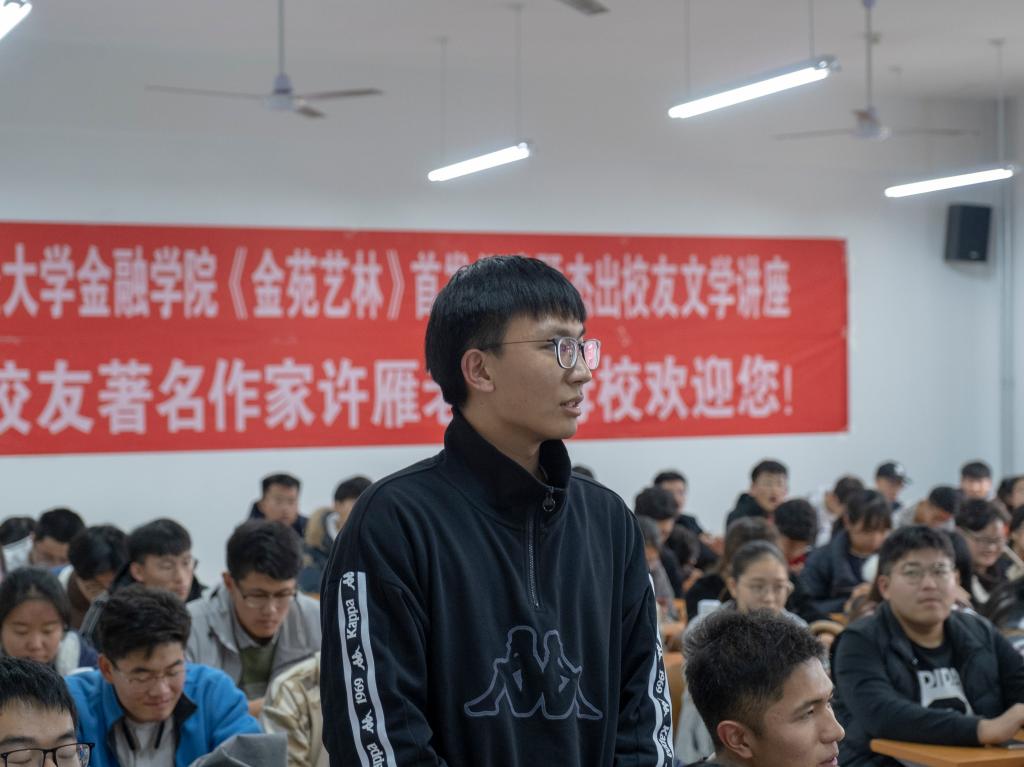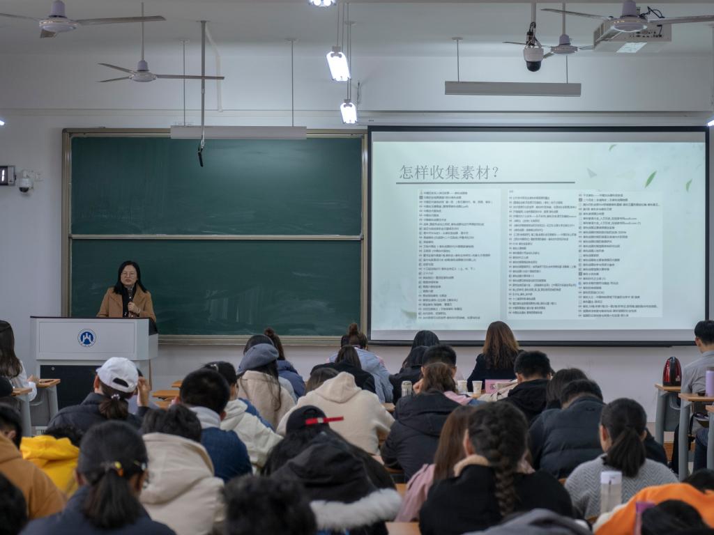 许雁老师就“文学素材的积累与灵感的把握”这一话题,向同学们分享了自己的创作经验,生动阐述了写作能力在工作生活中的重要性,并着重指出文学创作要做到“大事不虚,小事不拘”,跳出思维藩篱,转化创作视角,代入时代背景,才能更深刻地表达出自己的想法。在谈到灵感的来源和把握时,许老师指出,灵感来源于万事万物,要处处留心,勤于创作,勤于修改,并引导同学们在新闻中挖掘创作素材。随后,同学们就自己关于创作的疑惑与许老师进行了互动提问,许老师给出了自己的理解和感悟,并指出“文以载道”,任何文学作品都应当有自己的底线和价值。最后,庄老师指出文学是浸润心灵的东西,并从生活和心灵两方面强调了文学的重要价值,并鼓励同学们通过写作丰富精神世界,提高人文素养。