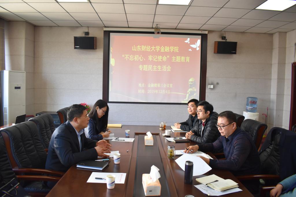 根据学校“不忘初心、牢记使命”主题教育领导小组部署和安排,2019年12月4日上午,开云体育 党委领导班子在舜耕校区金融楼第三会议室召开了“不忘初心、牢记使命”专题民主生活会。学校第二巡回指导组组长教师工作部部长刘旻航、成员校纪委监察处王丽娜科长莅临指导。党委书记吴红文,院长彭红枫,副书记范志毅、康亚通,副院长葛永波、冯玉梅参加了会议。党委委员、工会主席、办公室主任杨丰国,党委组织员李勇列席了会议。会议由党委书记吴红文主持。