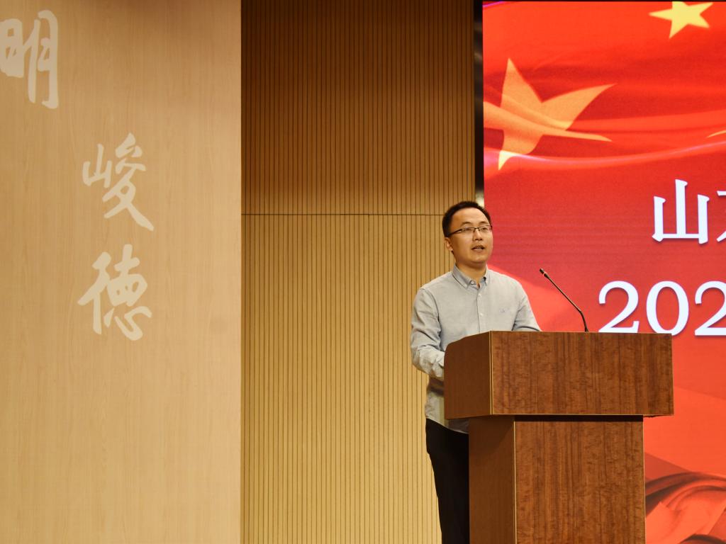 教师代表、“青年泰山学者”特聘专家刘海明教授在发言中,希望大家能够明确学习目标,尽快适应大学生活,积极锻炼身体,保持身心健康,应对更多的未来挑战。他希望同学们能够着眼长远,提升自身专业技能,保持高效率勤奋。最后,他更希望同学们能够胸怀国家和社会,做内心充满阳光的、有担当的人。
