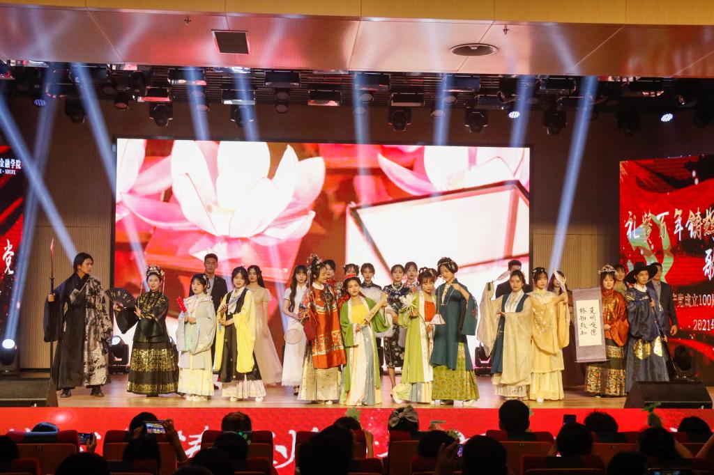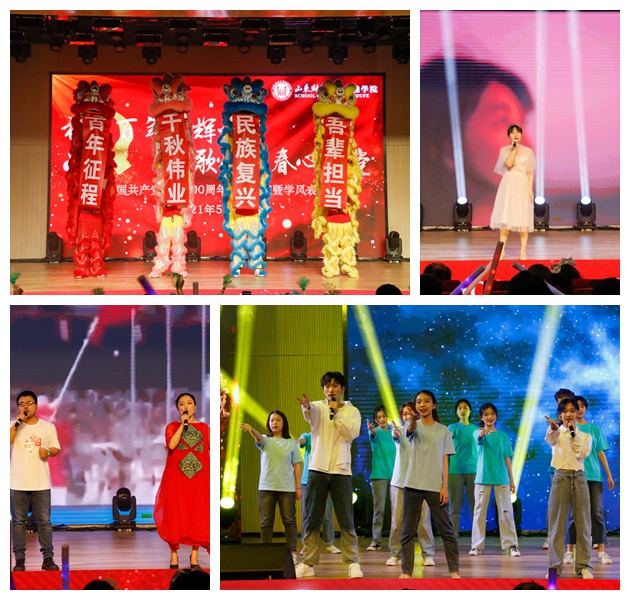 晚会分为永远跟党走、青春逢盛世、启航新征程三个篇章。在《喊出我的名字》激情澎湃、自信昂扬歌舞表演中拉开第一篇章——永远跟党走。一曲《少年》初心未变,激昂的旋律中传承着百年不移的赤子之心;《党旗颂》诗篇朗诵出对党最真挚的热爱与依恋;《灯火里的中国》高亢悠扬,唱出万家灯火的繁荣祥和;《因为有你,山河无恙》的情景剧,表达着对抗疫“逆行者”的崇高敬意与热情讴歌;教工合唱团《我和我的祖国》、《唱支山歌给党听》更是唱出了对党最朴实的情感,现场反响热烈。精彩的表演,让同学们深切地感受到,永远跟党走是中国人民历经百年的英勇奋斗得出的历史结论。