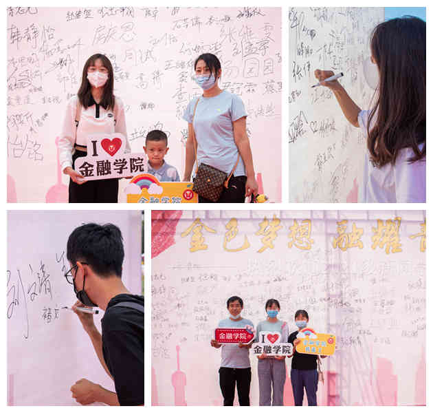 完成报到后,新生携家长走近签名墙,郑重地签下大学“第一笔”,尽显学子的壮志与抱负。迎新志愿者端起相机,捕捉帧帧美好镜头,记录中青两代共续财大之缘的精彩瞬间。报到新生中有与父母均是校友的、有报到当日即生日的、有带着社区防疫志愿者表扬信来的……迎新现场惊喜连连。“金色梦想,融耀青春”,开云体育 莘莘学子在此开启辉煌之旅。