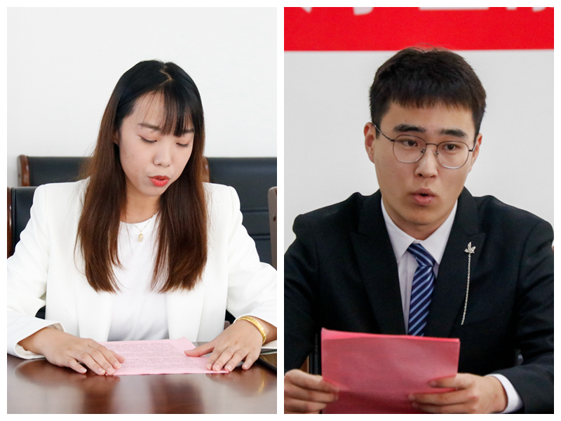 会议伊始,第九届学生会主席周欣圆同学回顾了过去学生会工作的进展、突破、创新和改革情况,表示学生会工作始终围绕国家政策,牢记打造品牌学院,踏实服务学生的理念,贯彻落实“三全育人”和“五讲四美三热爱”的工作要求,希望新一届学生会能够继往开来,赓续荣光。接着,陈静老师宣布第十届学生会主席及各部部长的学生名单。第十届学生会主席朱子强在发言中表达了对学生会未来的计划、展望与改革建设的设想,表示将继承发扬学生会全心全意服务学生的工作理念,带领学生会成员以身作则,精诚协作,脚踏实地,更上一层楼。