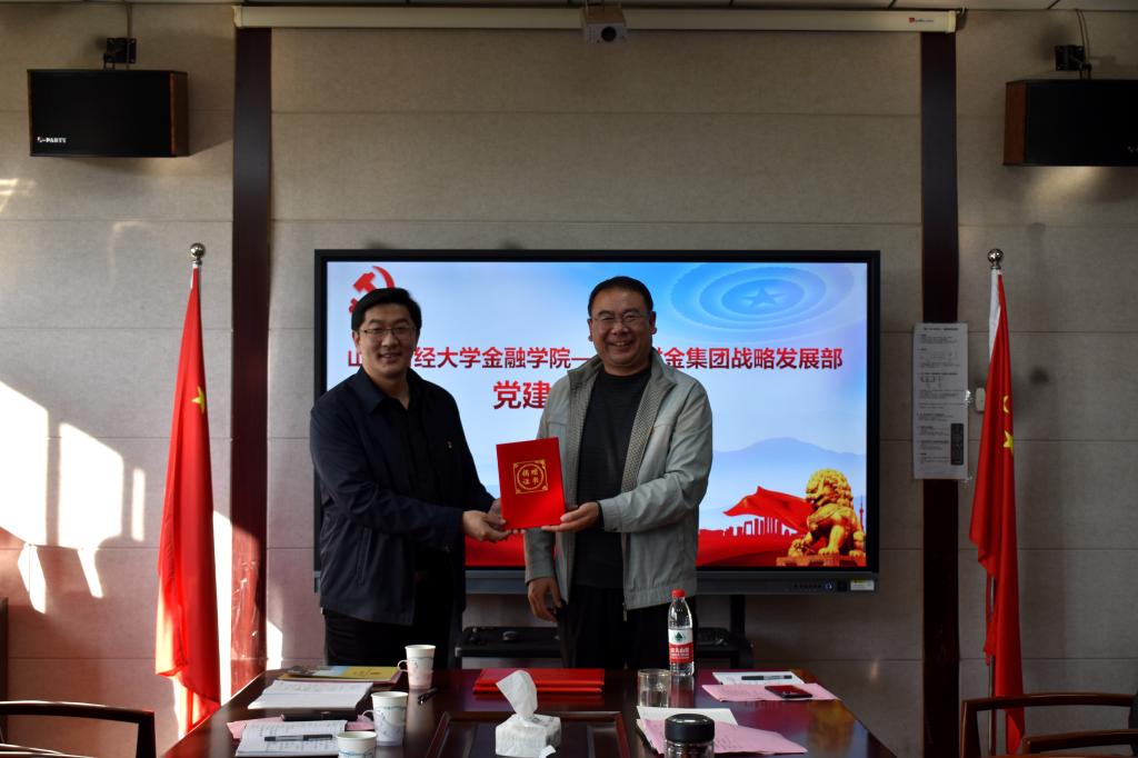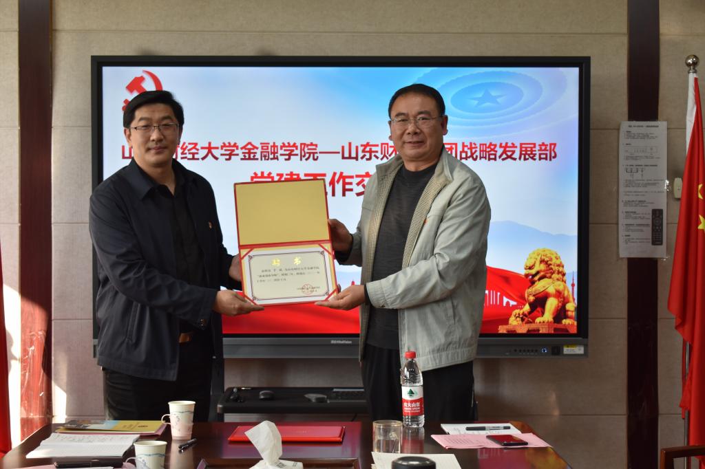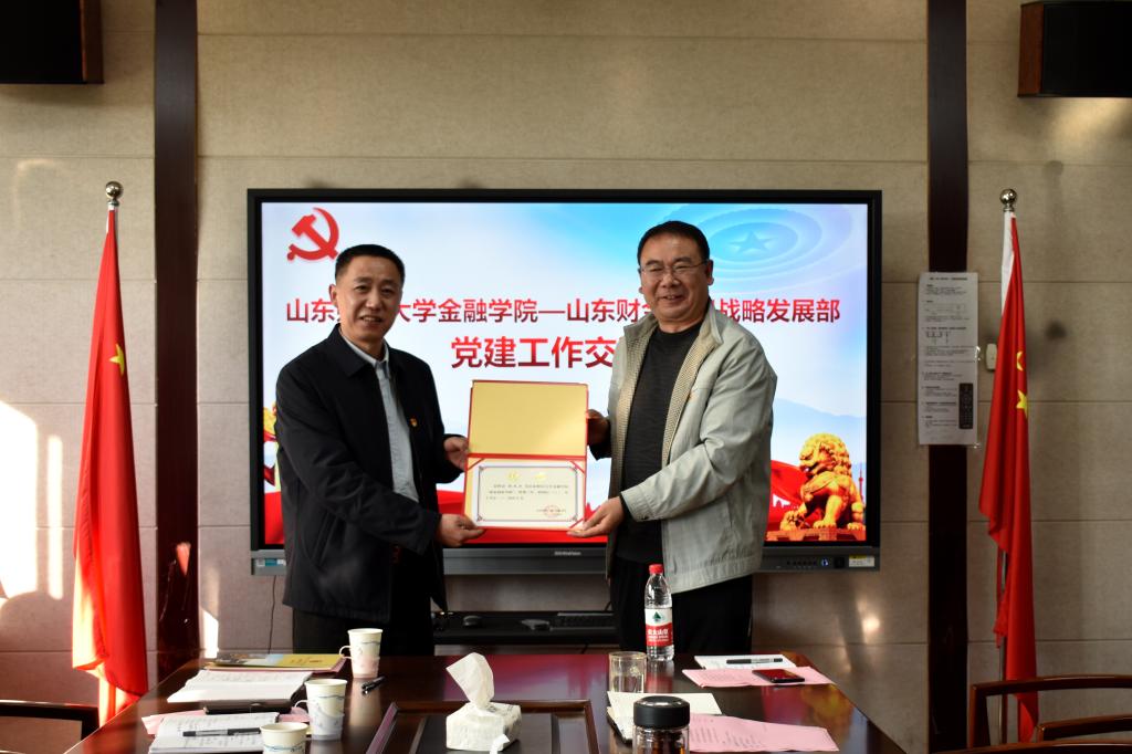 10月22日,山东财金集团战略发展部部长丁毅、资深经理赵大力、山东财金研究院副院长李增源、财金宏业(北京)公司部长李森等一行九人莅临我院开展党建工作交流,并捐赠了学科专业相关书籍。