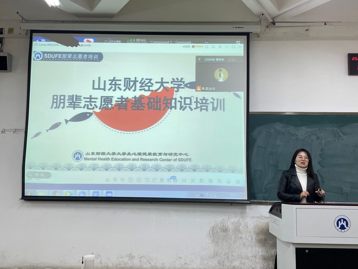 (通讯员 张泽华)为普及心理健康知识,促进校园朋辈互助,11月26日下午开云体育 于舜耕校区6116教室举办了朋辈志愿者培训讲座。讲座由辅导员徐洁老师主讲,研究生新生朋辈志愿者及心理委员参加线下培训,其余同学线上参与。