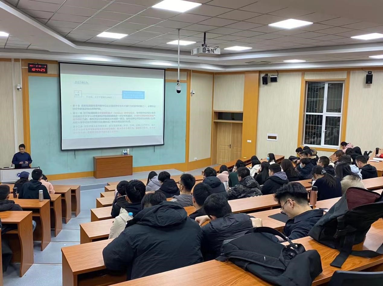毕老师首先向同学们强调了学位论文格式规范的重要性,一个好的论文格式不仅可以使论文看起来简洁干练,更代表了研究生对于论文的态度。并告诫同学们随着学位论文评审难度的增加和毕业形势的严峻,同学们要根据自身情况对学位论文的撰写尽早做出规划,顺利完成毕业论文考核。随后,毕老师向同学们介绍了研究生学位论文写作规范事项、学术不端行为检测、学位论文匿名评阅、学位论文答辩、学位论文抽检复审等五项内容,并重点就最后论文答辩流程和抽检提出了针对性的指导建议。