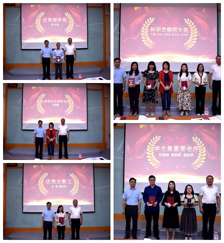 在表彰大会上,康亚通副书记宣布了2021-2022学年度各项工作中取得突出成绩的22名教职工和3个集体。吴红文书记、彭红枫院长分别向获奖个人和集体颁发了荣誉证书和奖品,并与获奖教职工合影留念。大会为新教师举办了隆重而又简朴的入职仪式,三位新入职的老师表示今后会以积极的心态和饱满的热情对待工作,为学院的发展贡献力量。