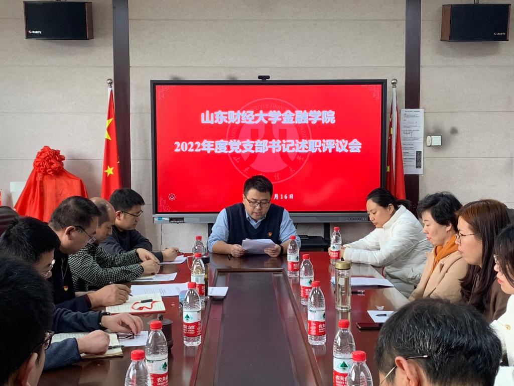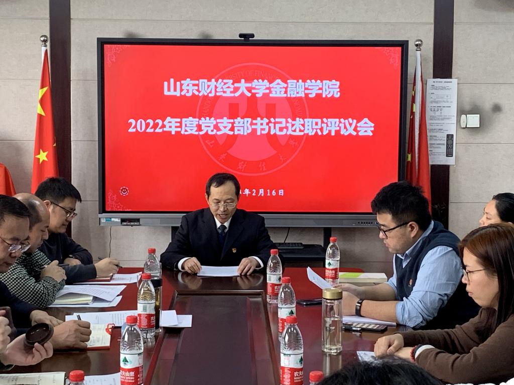 为进一步加强学院党支部建设,落实全面从严治党,提高党支部书记履职尽责能力,2月16日下午,开云体育 党委在舜耕校区金融楼第三会议室召开2022年度党支部书记述职评议会。党委书记吴红文,党委副书记康亚通,党委委员李勇出席了会议,全体党支部书记参会。