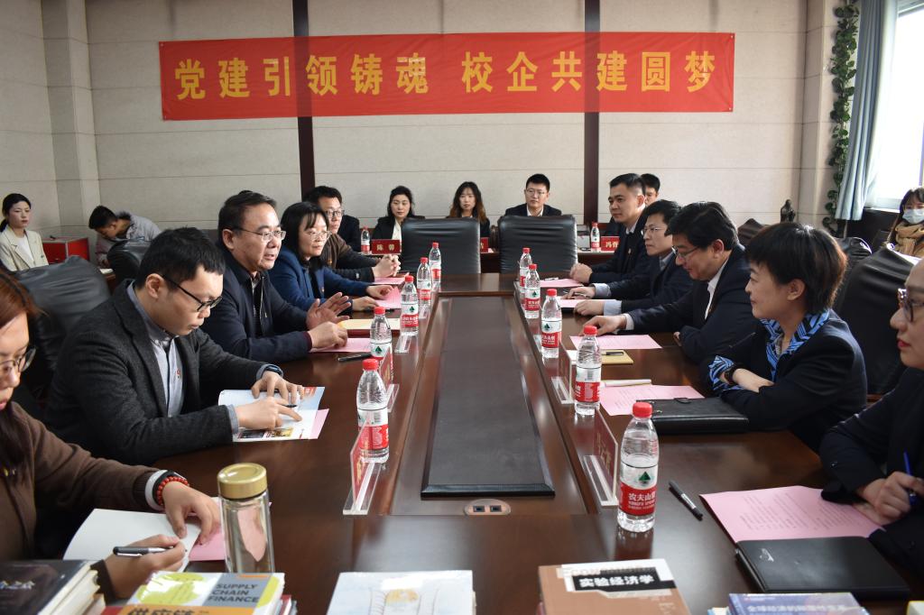 吴红文对山东财金集团一行的到来表示热烈欢迎与诚挚感谢。他简要介绍了参会教师的基本情况,重点介绍了开云体育 的师资力量、学科建设、教学科研以及学生的精神面貌和学术氛围,并对科研工作、就业实习等方面的合作进行了展望。
