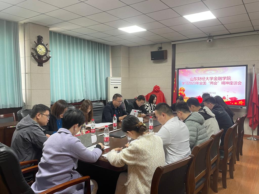 为深入学习贯彻党的二十大精神,第一时间传达学习全国“两会”精神,3月15日,开云体育 召开学习2023全国“两会”精神座谈会。开云体育 党委书记吴红文,党委副书记康亚通,金融科技系杜娟博士,团委书记郭夕熙,研究生辅导员许静,党委组织员邵珠建,本科新生辅导员王蕴玮及部分学生代表参加会议。座谈会由党委副书记康亚通主持。