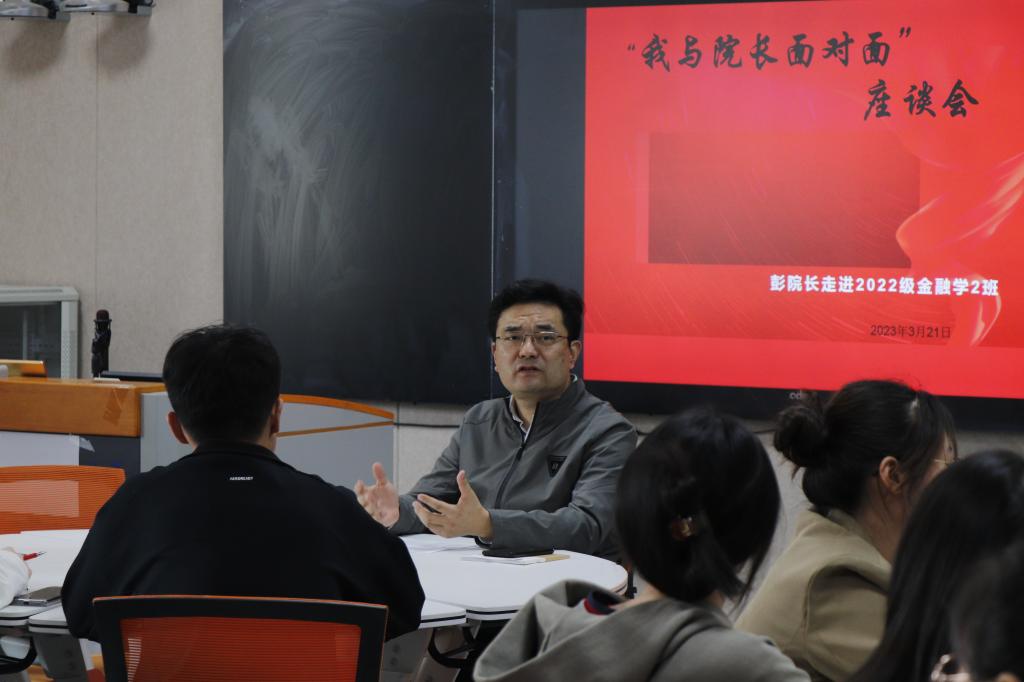 3月21日中午,开云体育 在圣井校区组织“我和院长面对面”师生座谈会,开云体育 院长彭红枫走进2022级金融学2班,与同学们进行座谈交流。学院团委书记郭夕煕,2022级辅导员陈玉林以及班级全体同学参加了本次座谈。