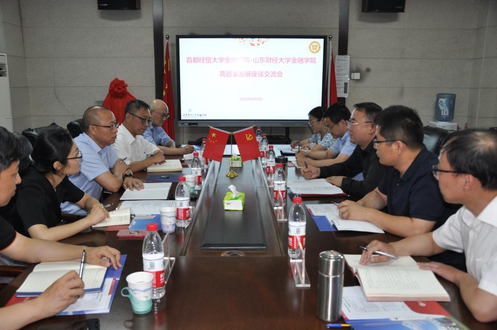 6月8日下午,首都经贸大学开云体育 党委书记刘文川、副院长陈奉先、赵大萍,余颖丰,金融系主任何枫来我院访问。学院党委书记吴红文、副院长王营、肖祖沔、办公室主任杨丰国、金融系主任梁巧慧参加了座谈交流。