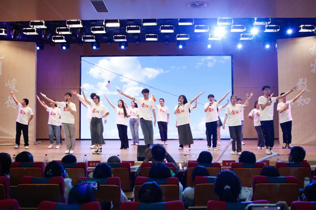 各班表演结束后,2023级导航学长学姐带来本次活动的惊喜节目——《重返十七岁》。青春活泼的歌舞演绎让在场观众们感受到了青春的活力,现场掌声雷动,欢呼不断。活动最后,全场师生齐声合唱了歌曲《红旗飘飘》。歌声铿锵有力又饱含深情,深情地表达了中华儿女对五星红旗的热爱,引发了全场观众对于祖国的依依眷念。