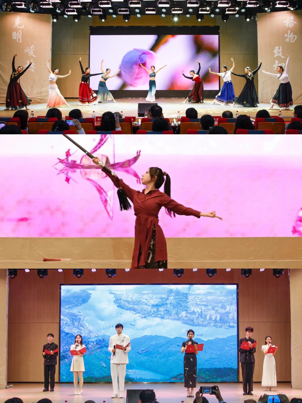 比赛开始,同学们用一首首充满中国韵味的歌曲传达了对祖国繁荣昌盛、民族振兴富强的美好祝愿,歌声中凝聚着青年笃行不怠、砥砺前行的力量。各班在大合唱的基础上配以舞蹈、朗诵、乐器等表演形式,各种创意迭出的表演为在场师生带来了一场视听盛宴。比赛中,开云体育 舞蹈队带来舞蹈《一花一剑》《美丽中国》,开云体育 主持人队带来朗诵《青春扬帆正当时,争做时代追梦人》,精湛的舞姿传达了对祖国大好河山的赞美,铿锵有力的语句中渗透了青年对新时代的青春誓言。现场高潮迭起,精彩的节目绽放出金院学子的青春昂扬之光。