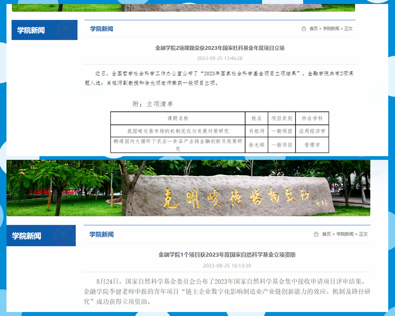 一、2023年9月,教育部印发通知,公布第三批“全国高校黄大年式教师团队”创建示范活动入围名单,我院由彭红枫教授为负责人的“金融学教师团队”入选,全国共199所高校团队入选。在此之前7月,“金融学教师团队”入选山东省第三批“山东省高校黄大年式教师团队”,被确定为全省100个教师团队之一。