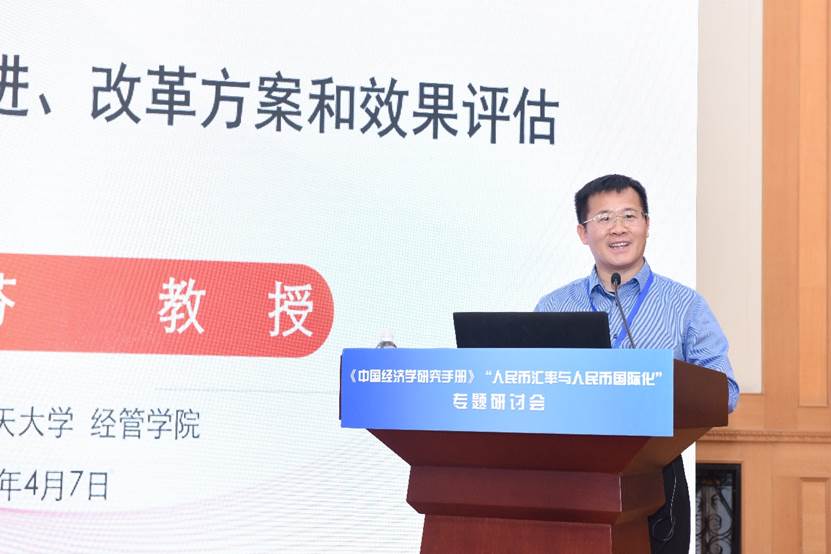研讨交流环节伊始,《人民币汇率与人民币国际化》章节作者谭小芬教授和彭红枫教授介绍了本章的撰写情况和主要内容。谭小芬教授指出,该章立足中国国情,归纳了人民币汇率制度的演进以及人民币汇率的决定因素,探究了人民币均衡汇率与人民币汇率低估的问题,评估了人民币汇率变化的效应,讨论了人民币汇率制度改革的目标和路径,总结了人民币汇率制度改革中的中国经验和中国贡献,并对人民币汇率领域的未来研究方向进行了展望。