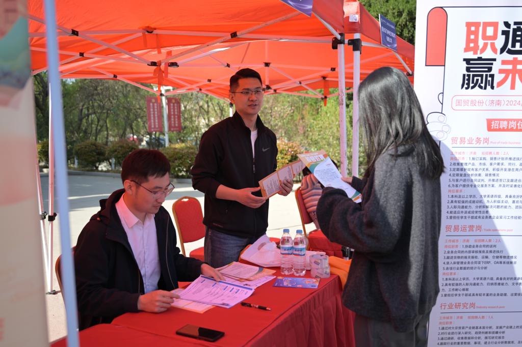在招聘会现场,中国人民财产保险山东分公司、中国大地财产保险山东分公司、安联人寿保险、厦门国贸集团、中泰期货、西南证券山东分公司、威海市商业银行等33家用人单位参加活动,涵盖银行、证券、保险、外贸、教育、科技、制造业等多个行业,主要涉及金融学、金融工程、投资学、保险学、精算学、国际经济与贸易、国际商务等相关专业,为我校毕业生提供优质就业岗位559个,现场1000余名同学进场求职,简历投递积极踊跃,初步达成就业意向203人。现场招聘单位负责人表示,此次招聘周活动前来投递简历的学生数量多、求职积极性高、就业能力素质强,不仅包括2024届应届毕业生求职,还有非应届毕业生提前了解用人单位需求,寻求实习岗位。现场还设立了各类服务专区,为广大毕业生提供就业洽谈、政策宣讲、法律服务、就业指导、技能培训等服务,根据求职者的不同需求和特点,为毕业生提供个性化的职业指导服务,帮助毕业生提升就业竞争能力。