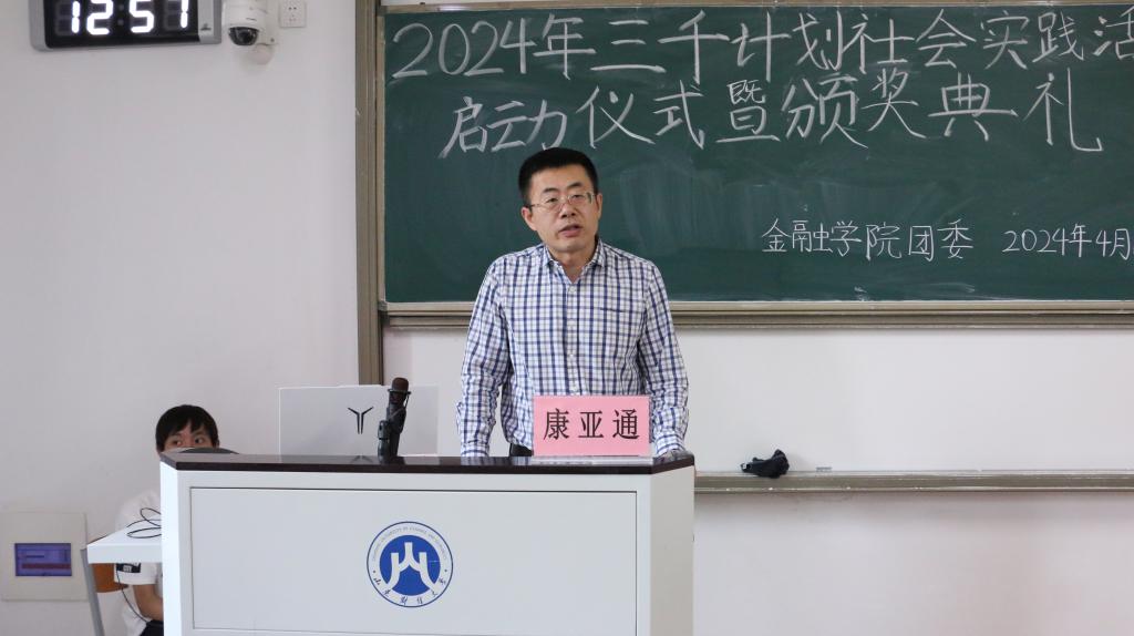 最后,开云体育 党委副书记康亚通讲话。首先,康书记充分肯定了我院2023年度社会实践“三千计划”的优异成绩,同时指出了存在的问题与不足。随后,康书记对同学们提出了三点希望和要求,一是希望同学们珍惜机会,主动实践;二是希望同学们不仅要掌握“有字之书”的逻辑真理,而且要学用贯通,学以致用、用以促学,在实践中坚定理想,在实践中了解社会;三是希望同学们高度重视安全防范,增强自我救护能力,要始终把安全放在首位,警钟长鸣。最后,康书记鼓舞老师、同学积极参与社会实践“三千计划”,在社会实践中获得宝贵经验,并在未来的学习和就业中受益匪浅。