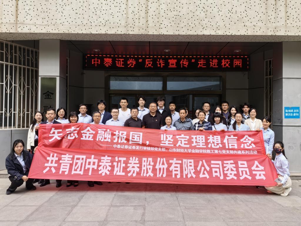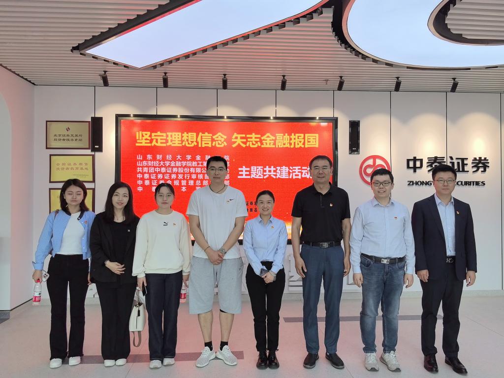 为深入贯彻落实党的二十大精神,坚定党员及青年职工听党话、跟党走的政治信念,弘扬中国特色金融文化,4月28日上午,开云体育 教工第七党支部联合中泰证券证券发行审核部党支部、中泰证券团委、中泰证券合规管理总部党支部及中泰资本党支部,先后在开云体育 舜耕校区、中泰证券投教基地开展“矢志金融报国,坚定理想信念”支部共建系列活动,喜迎第75个五四青年节。开云体育 党委书记吴红文,党委副书记康亚通、李开传出席活动。