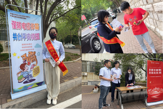 在舜耕校区,教工第七党支部青年教师与中泰证券团员党员代表、中泰证券投教基地党员代表,分别在教学楼、食堂与操场向师生发放金融科普手册,并进行防非、防诈及反洗钱志愿宣传,提醒广大学子严禁出租、出借、出卖电话卡、银行卡、互联网账户和个人信息,同时以经典案例的形式对常见金融诈骗进行讲解,并就非法买卖银行卡危害、“校园贷”危害与学生们进行宣传交流。