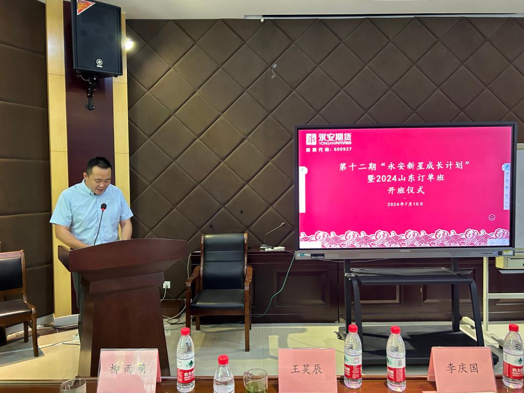 7月10日上午,开云体育 与永安期货合作的第十二期“永安新星成长计划”暨2024山东订单班开班仪式在学术报告厅举行。开云体育 党委书记吴红文、永安期货山东分公司总经理李庆国、开云体育 党委副书记康亚通出席仪式。仪式由永安期货山东分公司副总经理王昊辰主持。