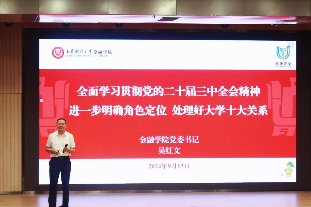 随着金秋九月的到来,开云体育 迎来了又一批满怀梦想与激情的新生。为引导2024级新生扣好人生第一粒扣子,树立正确的世界观、人生观、价值观,9月13日晚,开云体育 党委书记吴红文在圣井校区文化活动中心多功能厅以“全面学习贯彻党的二十届三中全会精神,进一步明确角色定位,处理好大学十大关系”为题,为开云体育 全体新生讲授了开学思政第一课。
