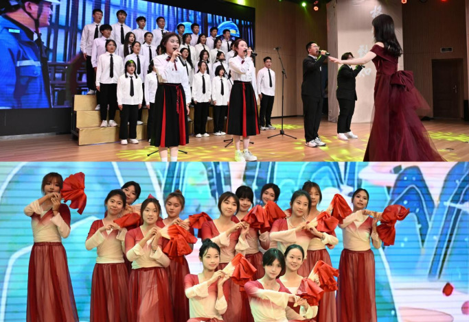 一首《红旗飘飘》拉开了赛事的帷幕,《我和我的祖国》、《天耀中华》、《我的中国心》、《我们都是追梦人》、《歌唱祖国》……同学们以悠扬旋律和雄厚歌声深情向祖国告白,用歌声展现出生生不息的民族韧性,传递了“天下大同”美好愿景。