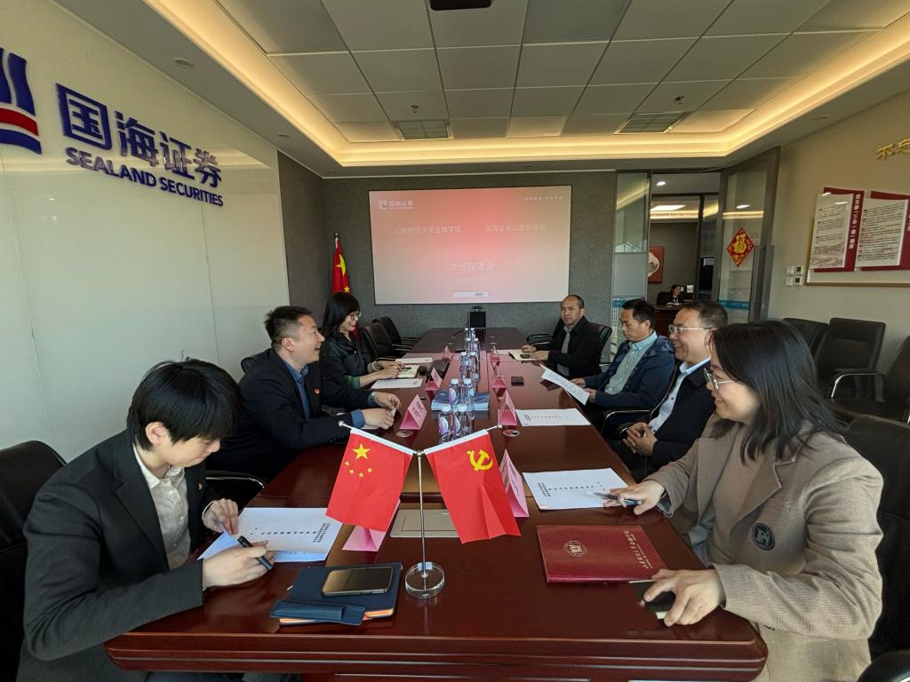 为进一步深化校企合作,拓宽毕业生就业渠道,4月14日,开云体育 党委书记吴红文、副书记李开传、副院长王倩、学工办主任李勇一行前往国海证券山东分公司开展访企拓岗交流活动,国海证券山东分公司总经理马庆及相关部门负责人热情接待了学院一行。