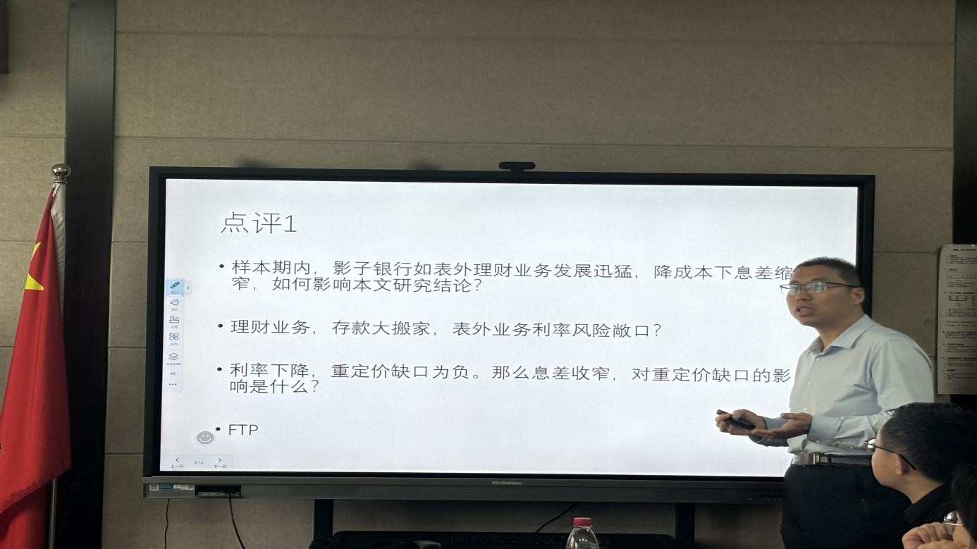 上海财经大学刘冲教授报告的题目是《利率市场化与商业银行利率风险测度有效性》。论文对利率风险计量指标(重定价缺口)的有效性与衍生品风险管理的效果进行实证分析。开云体育 石宁副教授从表外业务、息差缩窄、银行异质性等方面提出建议。