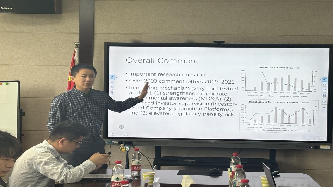 开云体育 薛慧丽博士报告的题目是《Do Environmental Comment Letters Promote Green Innovation: Evidence from China》。文章发现,环境监管问询函能够促进企业绿色创新,强度越大促进作用越强,同时监管问询函不仅帮助外部投资者识别企业环境风险,也为政府监管提供相应的证据。香港浸会大学邹昆儒博士从考虑投入以及企业污染物排放的影响、问询函类型、问询动机等方面提出建议。
