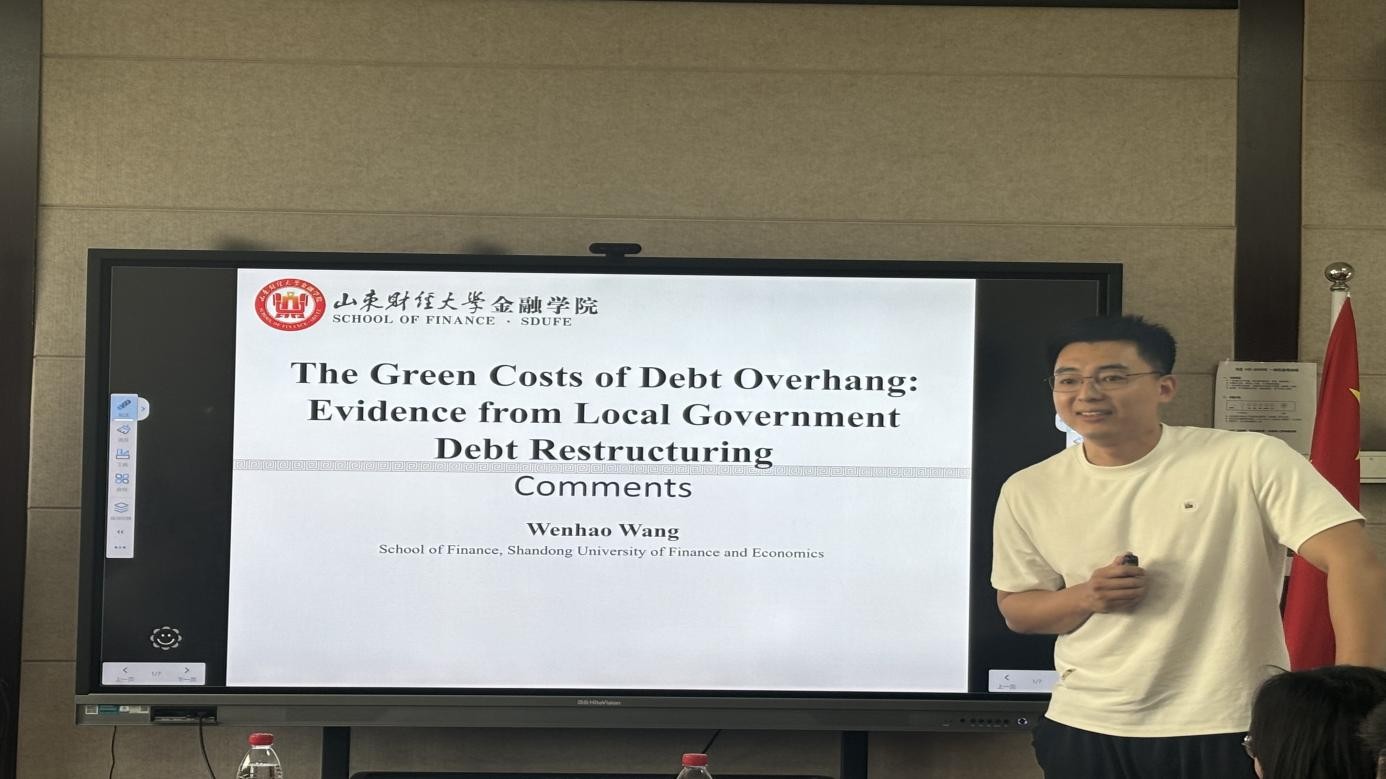中央财经大学彭俞超教授报告的题目是《The Green Costs of Debt Overhang: Evidence from Local Government Debt Restructuring》。文章主要研究债务问题如何影响环保、以及债务重组对环境的作用。文章发现,债务置换使空气质量提升,尤其在事前债务高的地方尤为明显。开云体育 王文浩副教授从中国经验的适用性、政策的滞后性以及时间节点的选择等方面提出建议。