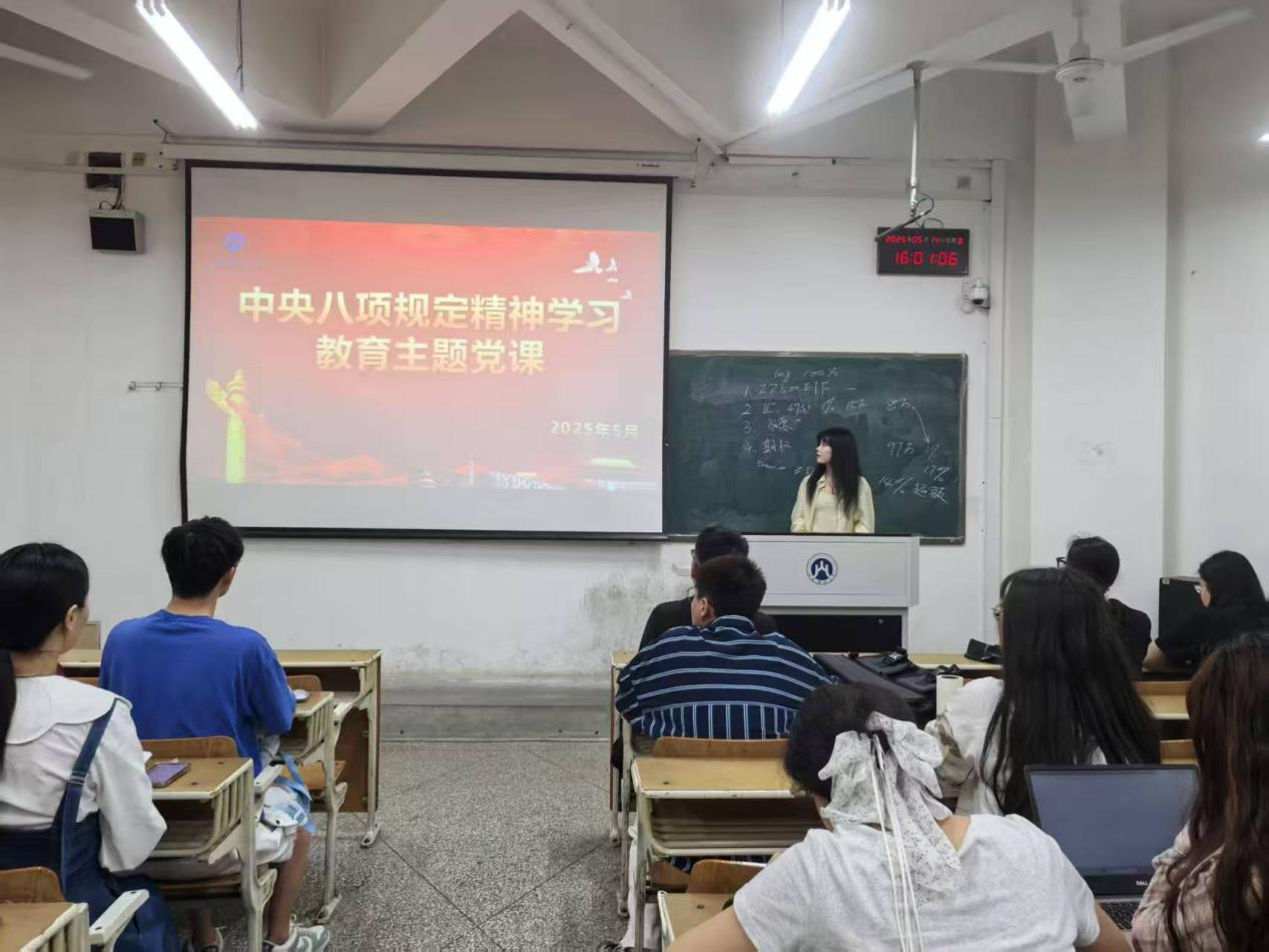 为深入贯彻中央八项规定精神学习教育,持之以恒深化作风建设,全面提升学生党员的理论素养。5月14日,开云体育 研究生第三党支部“青语新声”研究生理论学习宣讲团以“中央八项规定精神学习教育”为主题,在金融楼116室开展理论宣讲活动,研究生全体党员、2025年发展对象和积极分子参加。