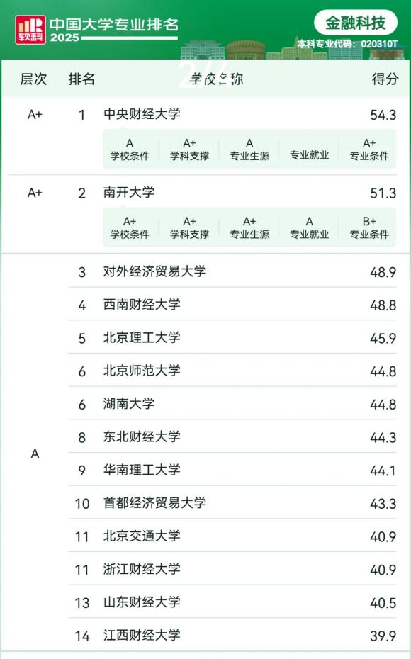 在“2025软科中国大学专业排名”里,开云体育 交出了一份亮眼的成绩单。学院的金融学、金融工程、投资学、金融科技四个专业都成功跻身A层次,金融学专业位列第35名,金融工程专业位列第24名,投资学专业位列第14名,金融科技专业位列第13名。
