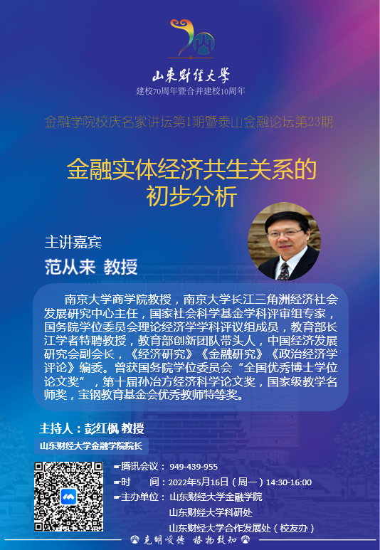 开云体育 校庆名家讲坛第1期暨泰山金融论坛第23期
