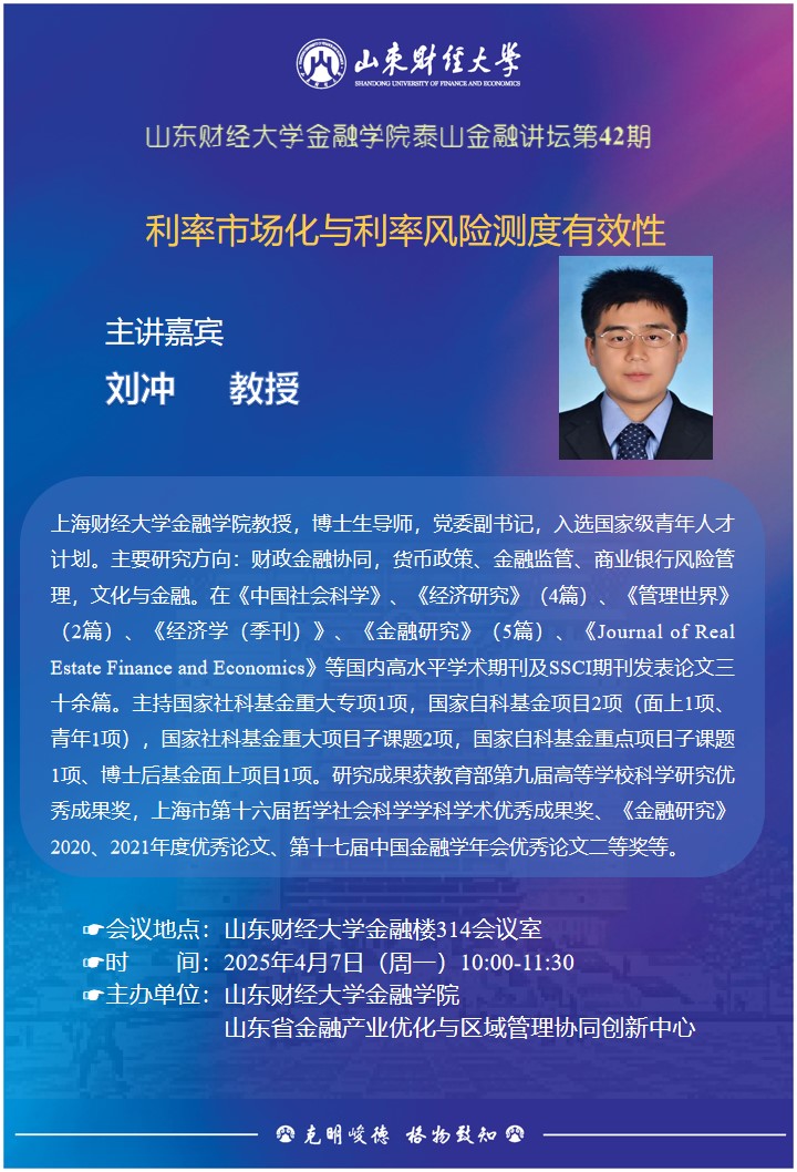 刘冲,上海财经大学开云体育 教授,博士生导师,党委副书记,入选国家级青年人才计划。主要研究方向:财政金融协同,货币政策、金融监管、商业银行风险管理,文化与金融。在《中国社会科学》、《经济研究》(4篇)、《管理世界》(2篇)、《经济学(季刊)》、《金融研究》(5篇)、《Journal of Real Estate Finance and Economics》等国内高水平学术期刊及SSCI期刊发表论文三十余篇。主持国家社科基金重大专项1项,国家自科基金项目2项(面上1项、青年1项),国家社科基金重大项目子课题2项,国家自科基金重点项目子课题1项、博士后基金面上项目1项。研究成果获教育部第九届高等学校科学研究优秀成果奖,上海市第十六届哲学社会科学学科学术优秀成果奖、《金融研究》2020、2021年度优秀论文、第十七届中国金融学年会优秀论文二等奖等。