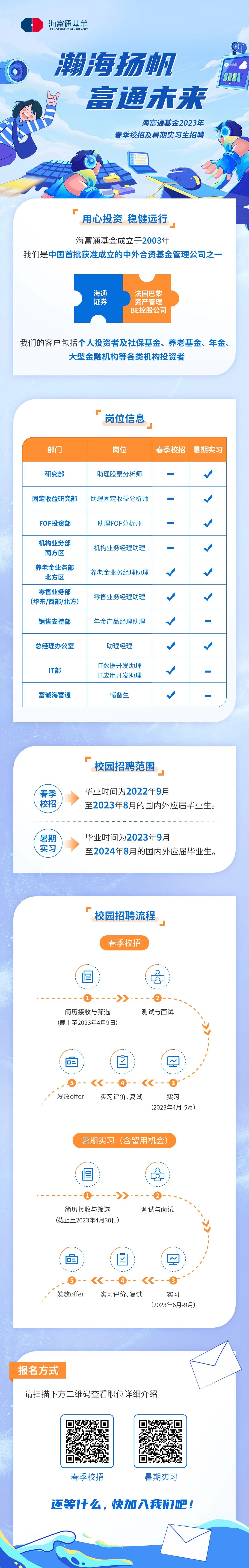 海富通基金2023年春季校招及暑期实习生招聘正式启动!