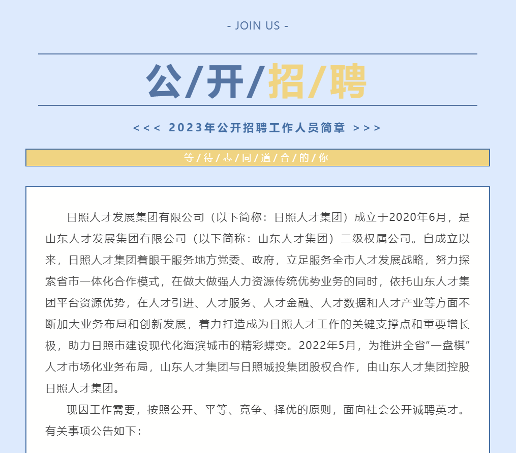 日照人才发展集团有限公司2023年公开招聘工作人员简章