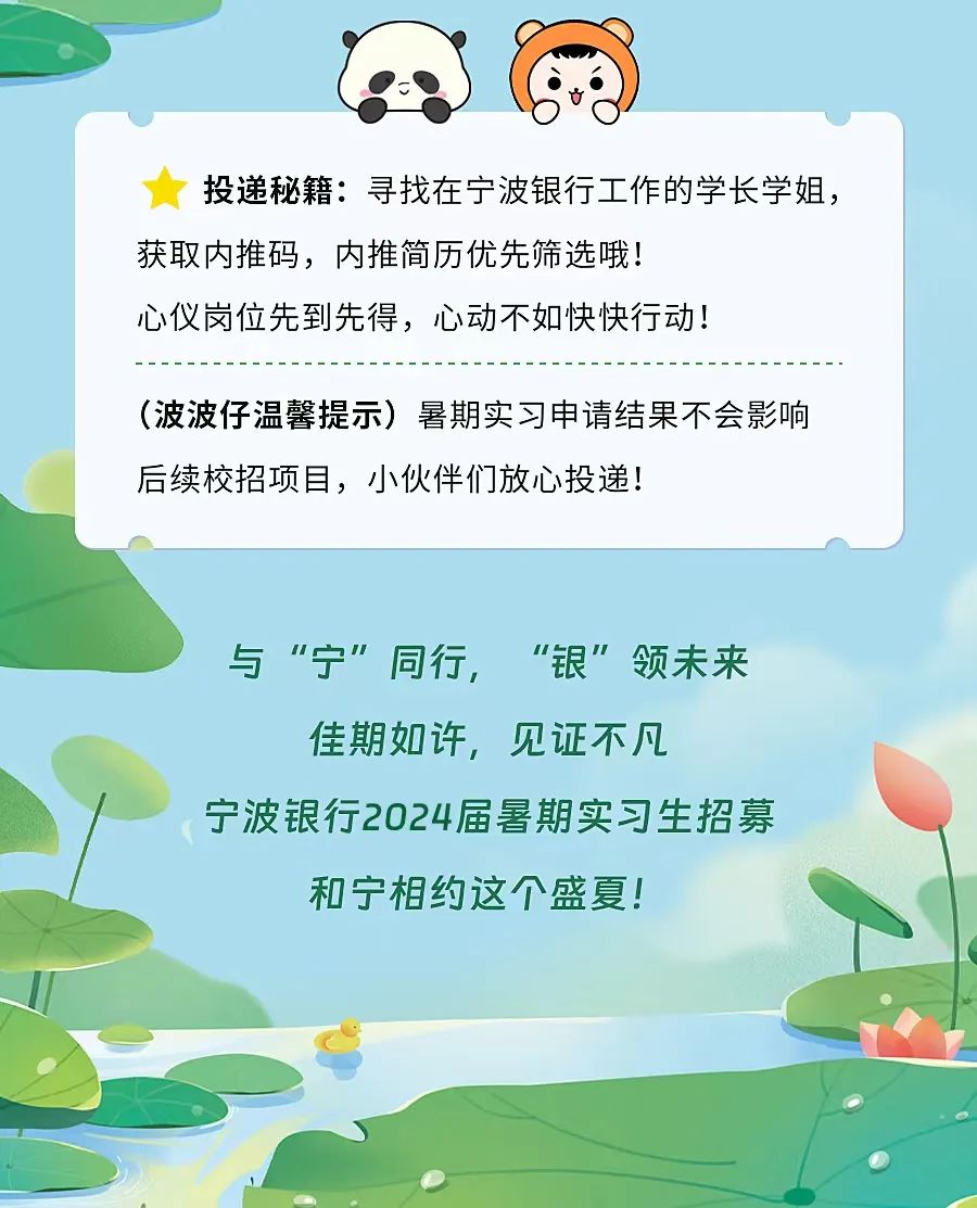 宁波银行 2024暑期实习生招募计划正式启动