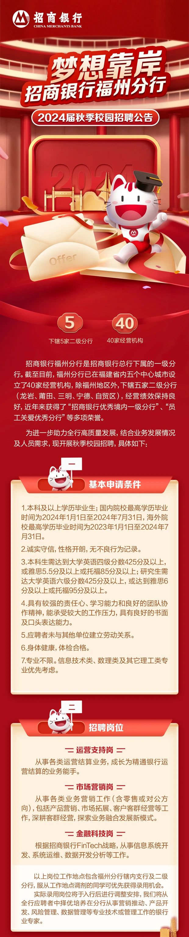 福州|“梦想靠岸”招商银行福州分行2024校园招聘