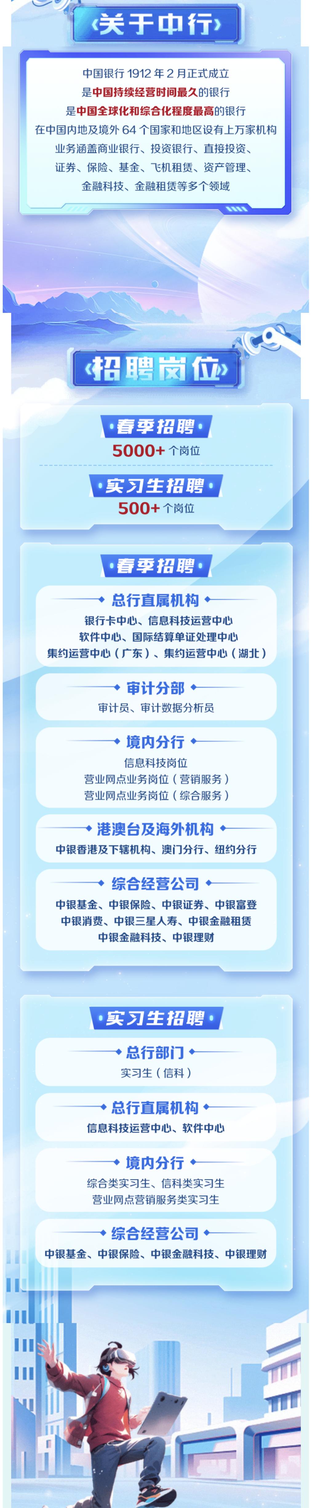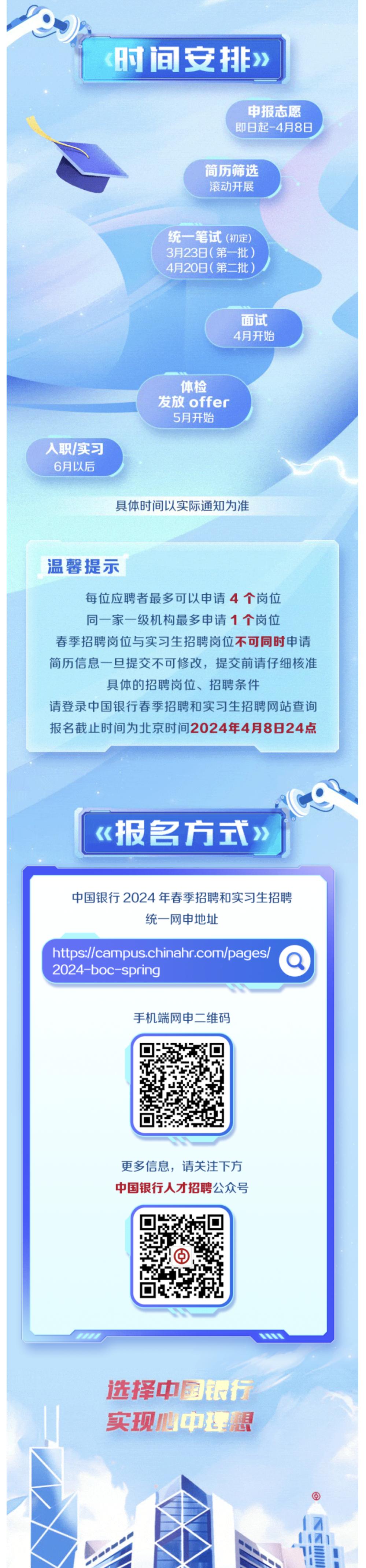 中国银行2024年春季招聘和实习生招聘同步启动!