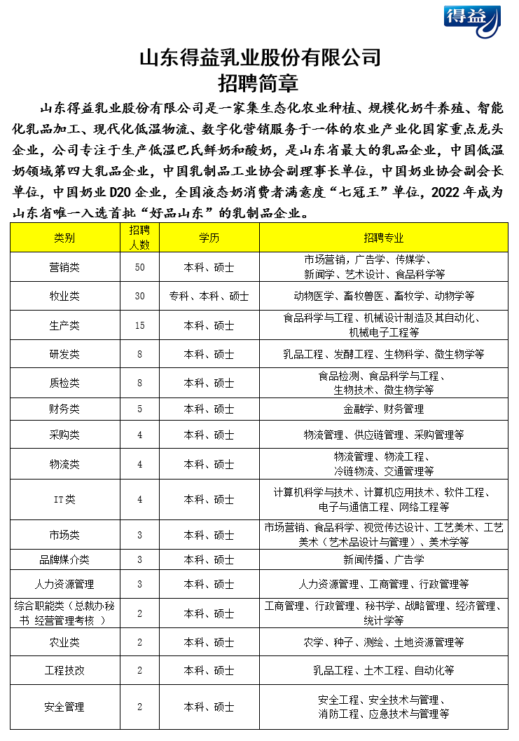 得益乳业2024校园招聘简章
