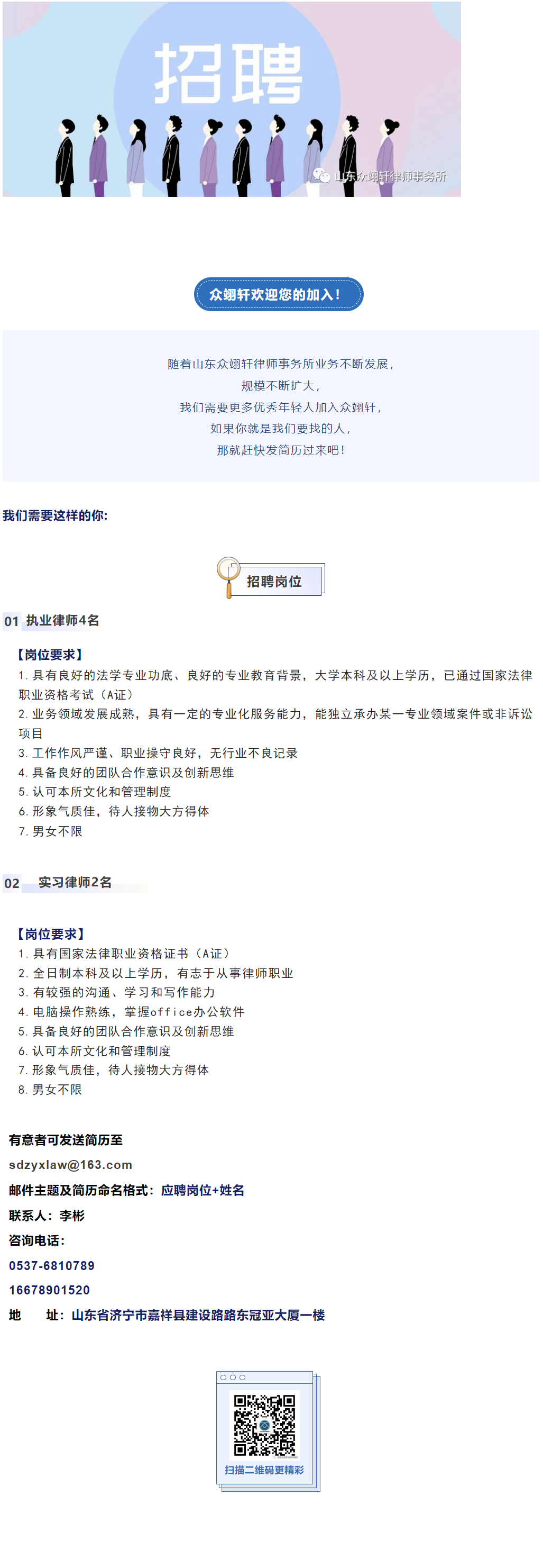 【律所招聘】山东众翊轩律师事务所招聘信息